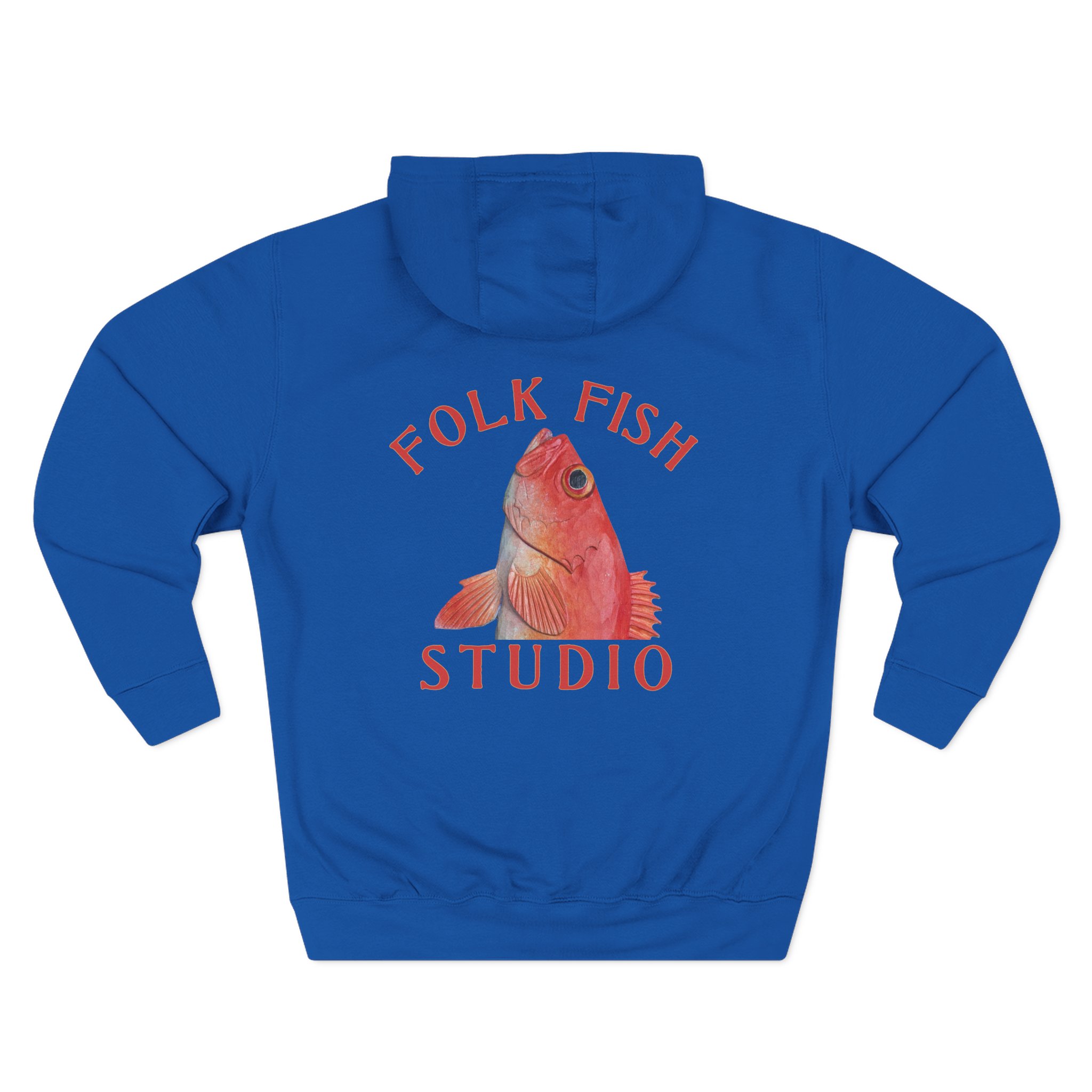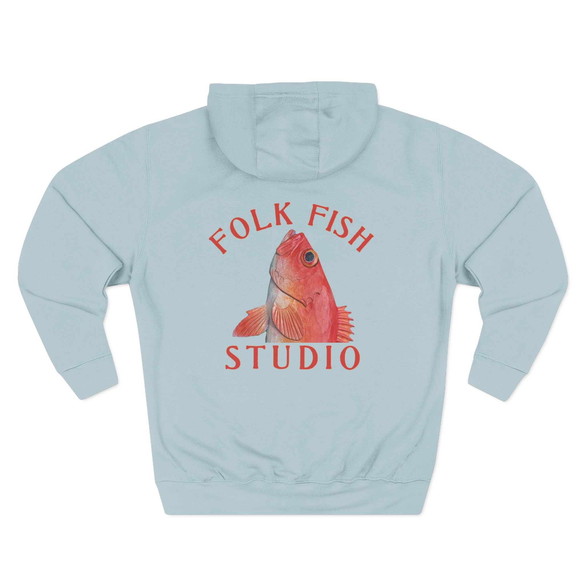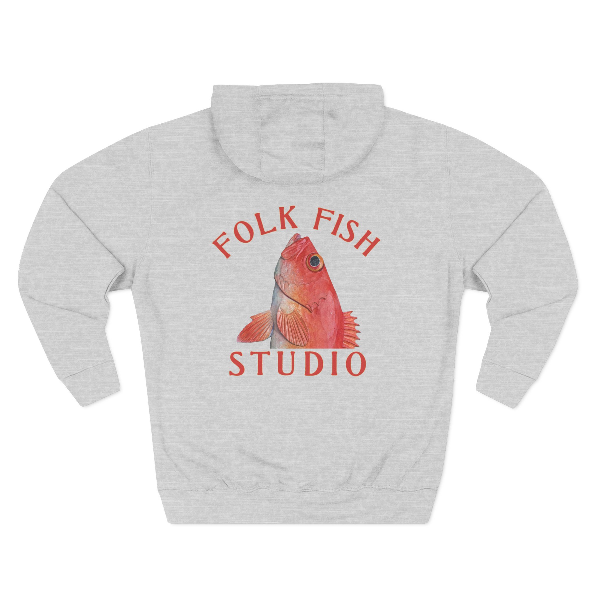 This medium-weight fleece hoodie carries the calm of early river mornings and the hand-crafted charm of an artist’s studio. The soft 3-end fleece and gentle hand-feel wrap you in warmth without bulk. A roomy kangaroo pocket keeps cold fingers tucked away while the adjustable hood with metal-grommeted drawstrings seals in comfort when wind picks up. Clean embroidery on the chest and a watercolor-style fish graphic with archival printing across the back give it a quietly curated look — like a favorite layer pulled on for studio days, market runs, or slow weekend fishing trips. Built to hold shape thanks to twill neck tape and reinforced topstitching, this hoodie looks lived-in from the first wear but resists unwanted shrinkage. It’s a wearable nod to makers, anglers, and anyone who prefers handcrafted details and understated, nature-inspired design.