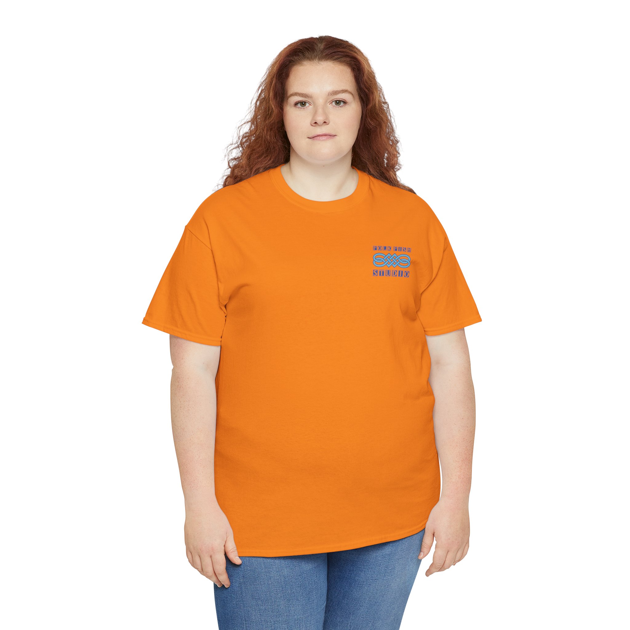 The design reads subtle from the front and sings a bit louder from the back, so it works whether you want low-key branding or a gentle statement. The fabric’s smooth surface means the colors stay true, and the ribbed collar keeps its shape after repeated wear. Tear-away label and stable shoulder seams make it comfortable and easy to live in — like an old favorite that arrived fully formed.