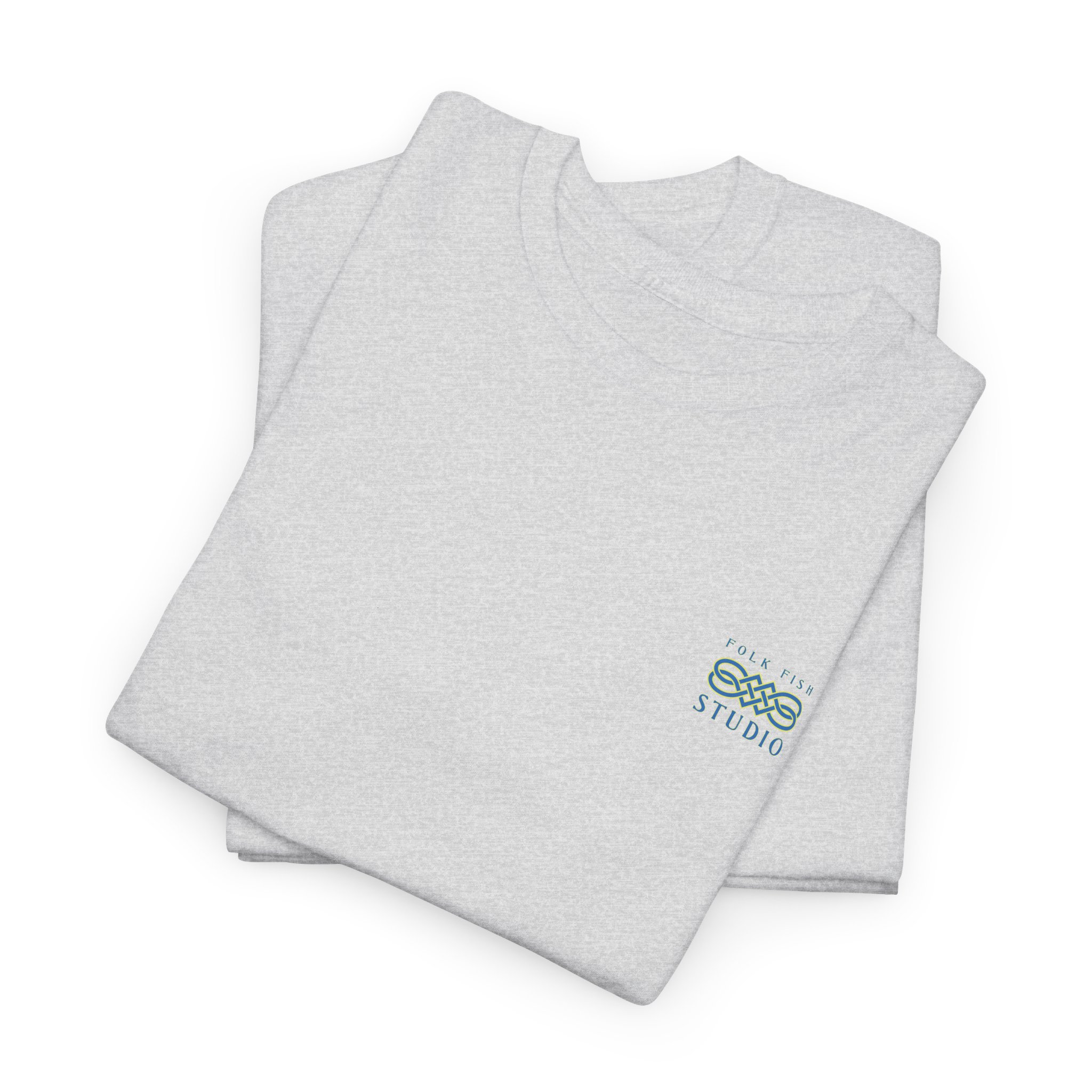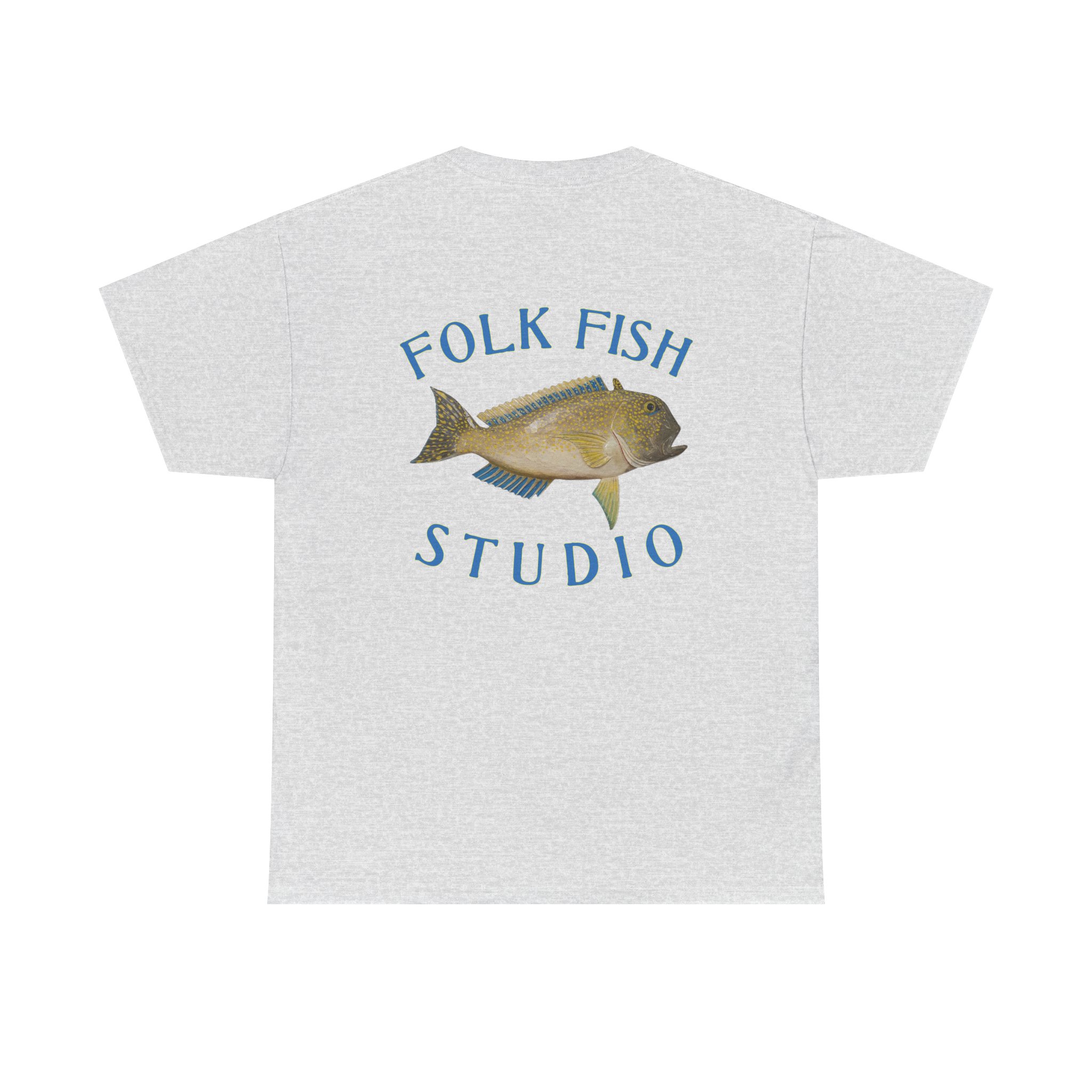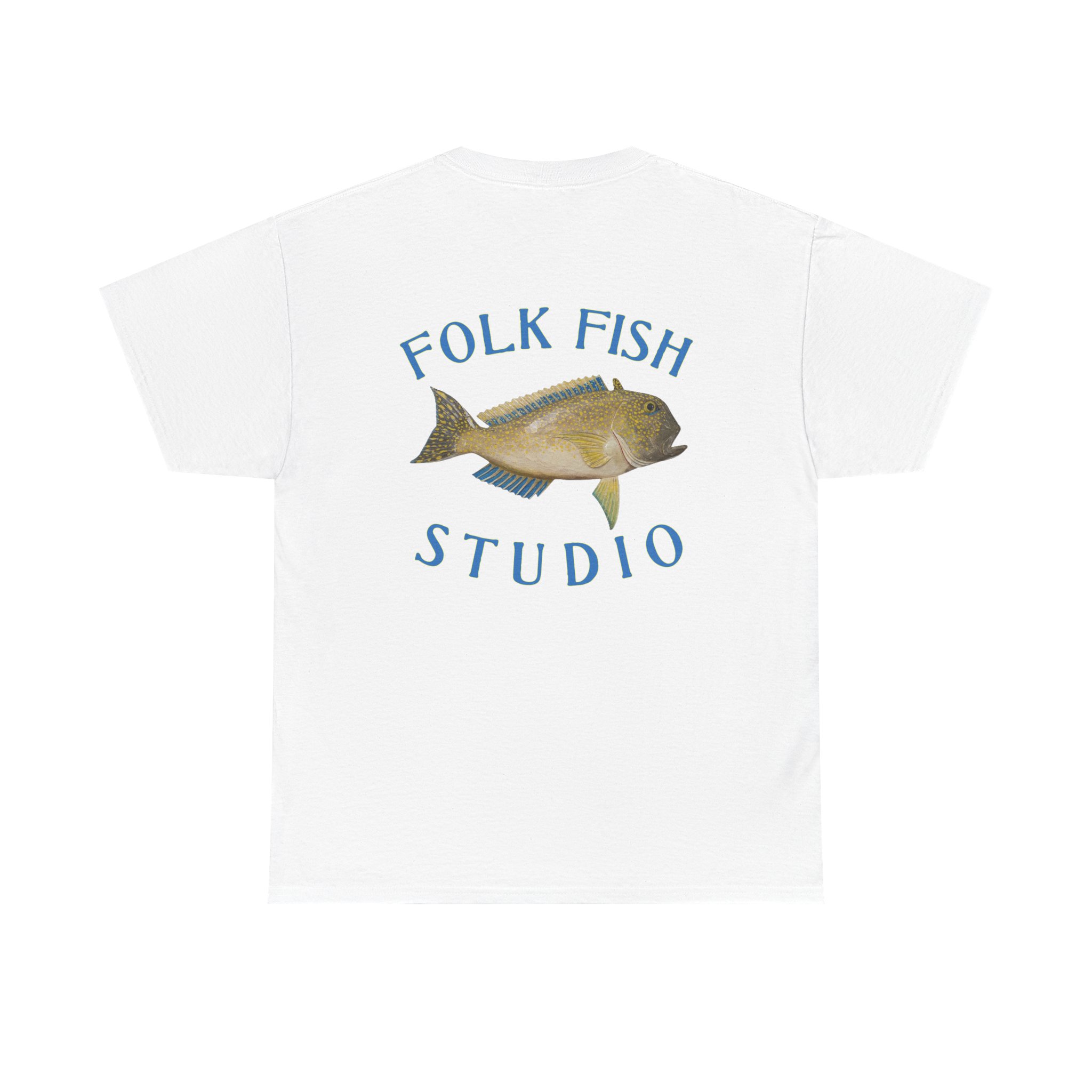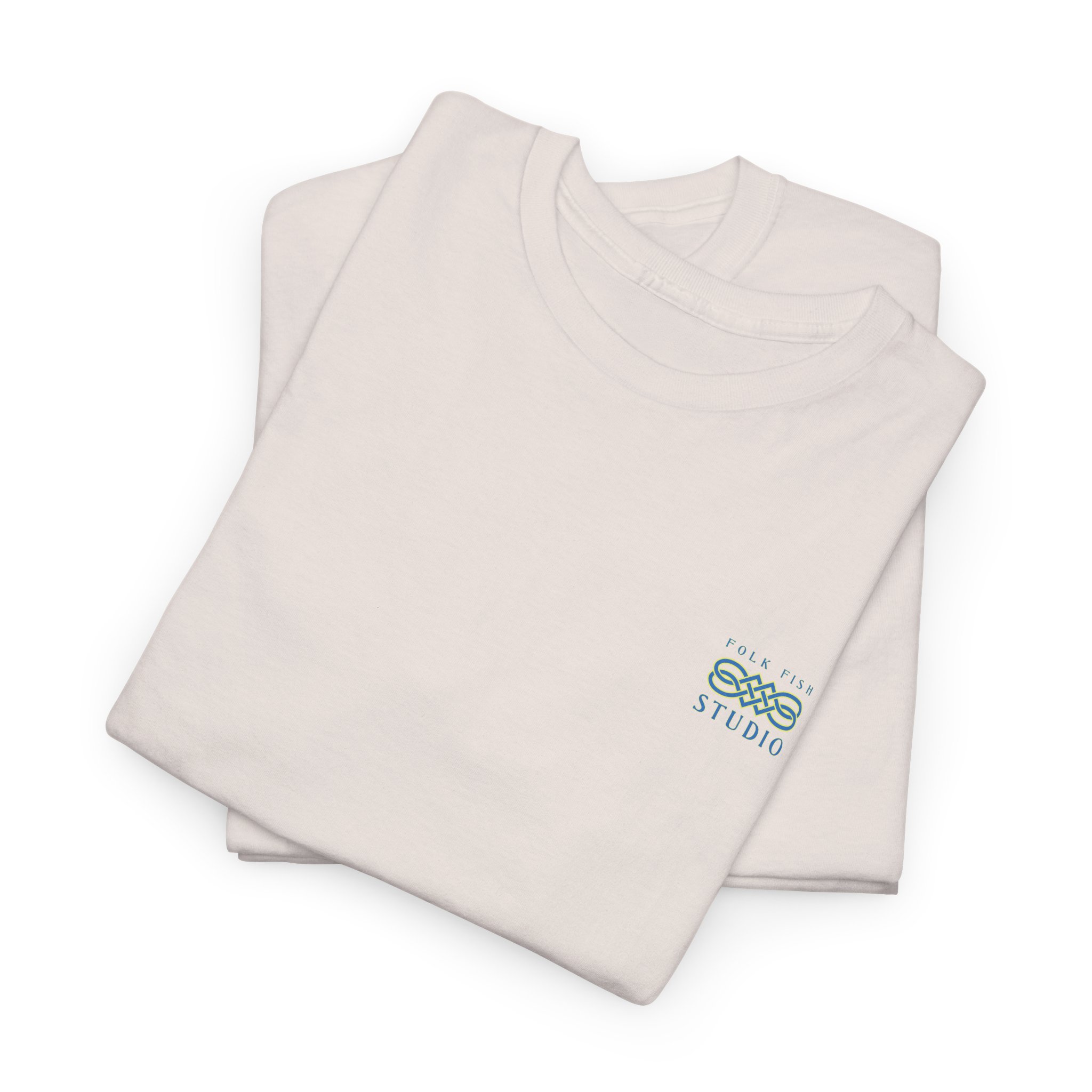 Lightweight, breathable, and made to be worn all day, this classic cotton tee carries a quietly confident coastal vibe. A soft, natural-feeling fabric holds a detailed fish illustration on the back with simple, serif lettering that reads “Folk Fish Studio.” The cut is relaxed and unrestrictive — think easy mornings at the pier, slow afternoons sketching by the water, and casual meetups with fellow makers. Subtle front chest branding keeps the look clean from every angle. It’s a shirt that layers well, ages nicely, and becomes part of a routine rather than a showpiece.