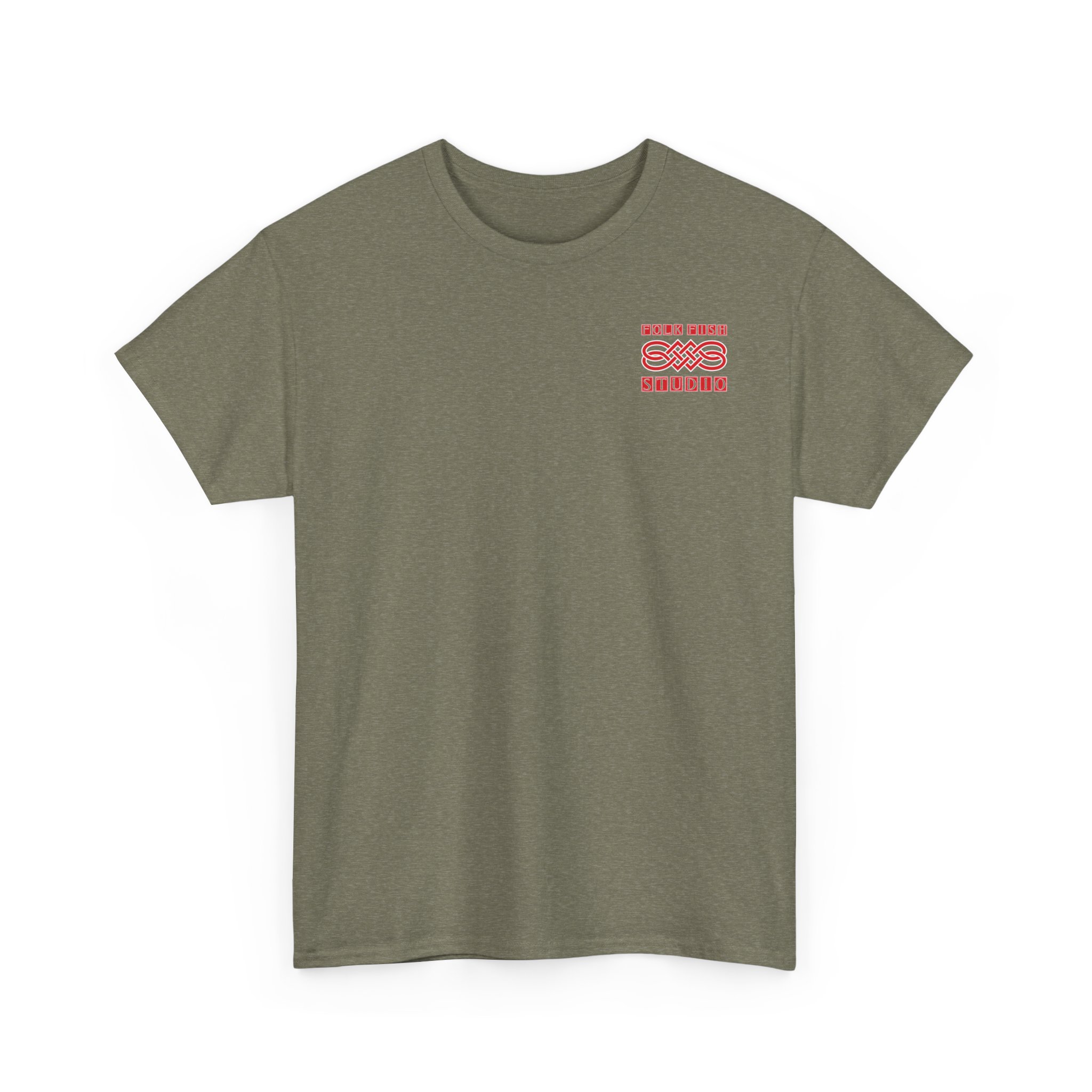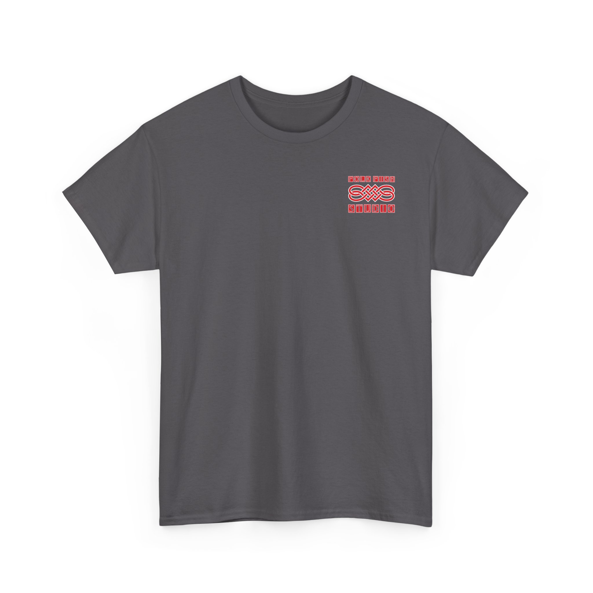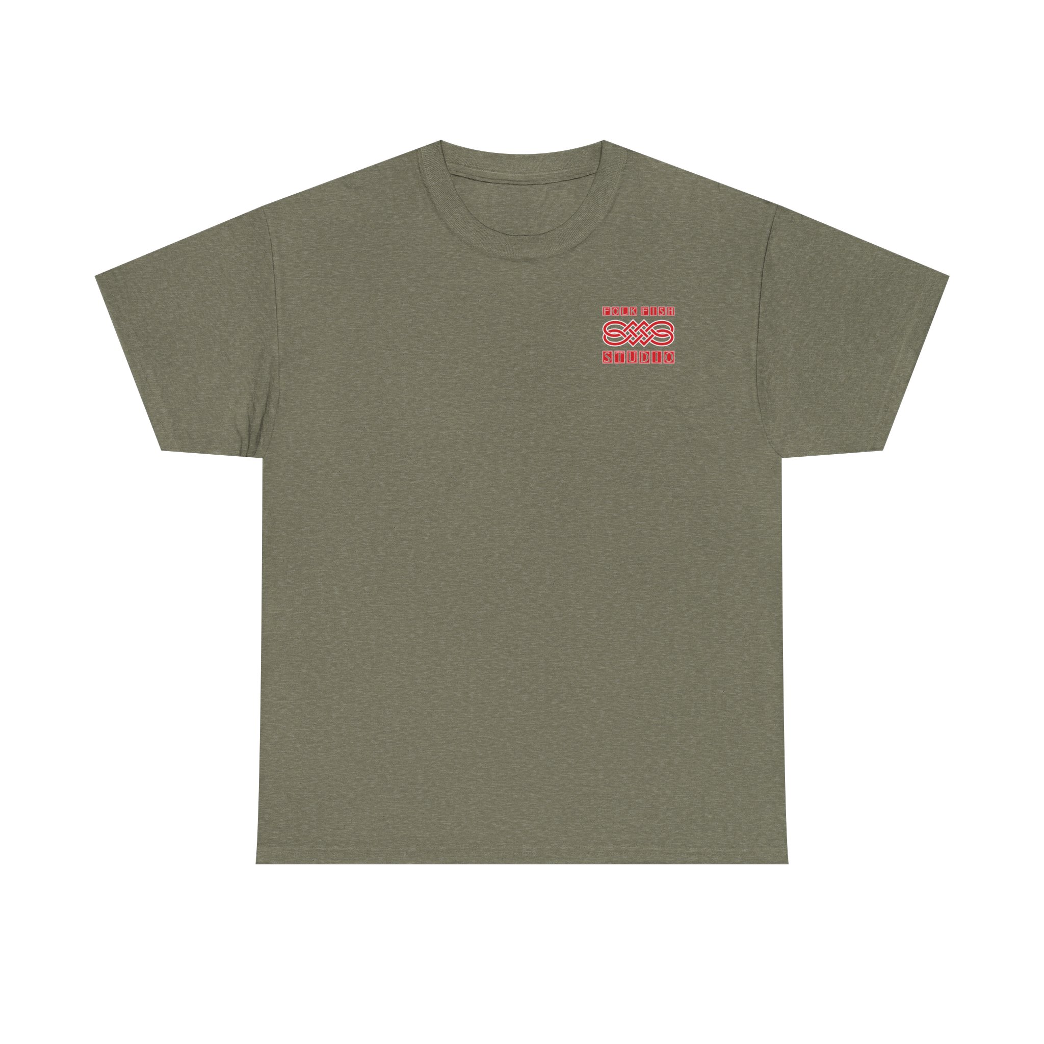A soft, breathable cotton tee printed with a faded, hand-inked studio emblem that feels lived-in from the first wear. The front features a small, subtle chest mark while the back carries a larger vintage fish illustration and arched studio name — like a band shirt that’s been on tour with you. Lightweight but sturdy, it drapes casually and keeps its shape thanks to a taped shoulder and ribbed collar. Wear it for slow mornings in the studio, seaside walks, or when you want an understated, artsy layer that reads calm and considered.